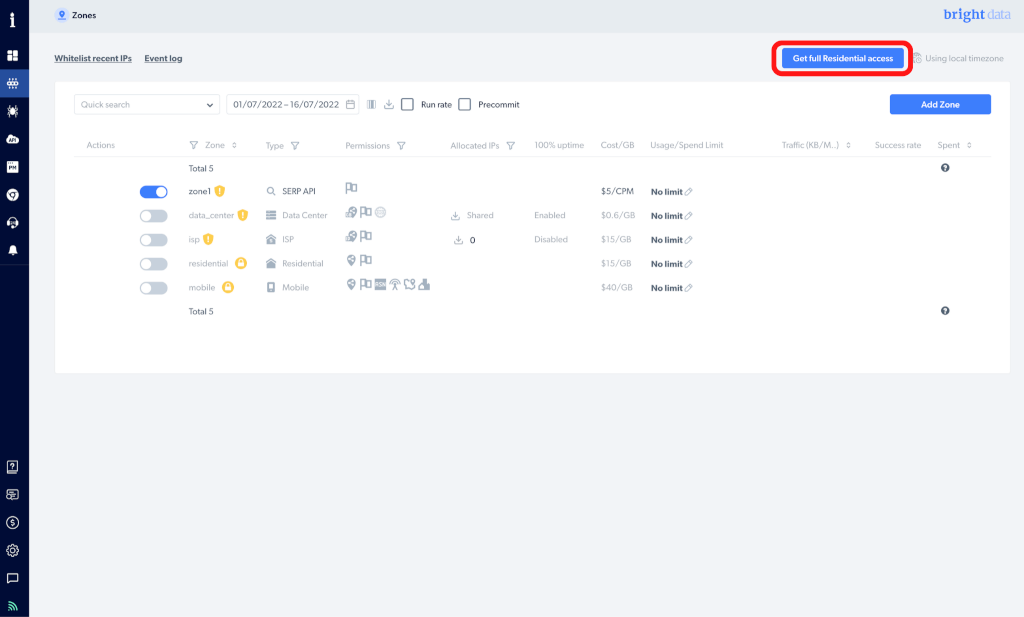 Bright Dataは7日間の無料トライアルを用意しており、すべてのネットワークとプロダクトが利用可能です。