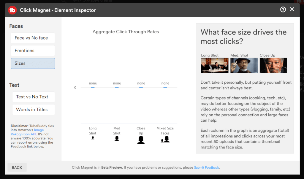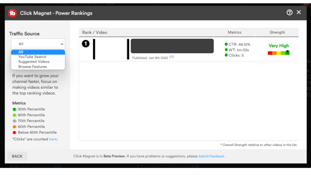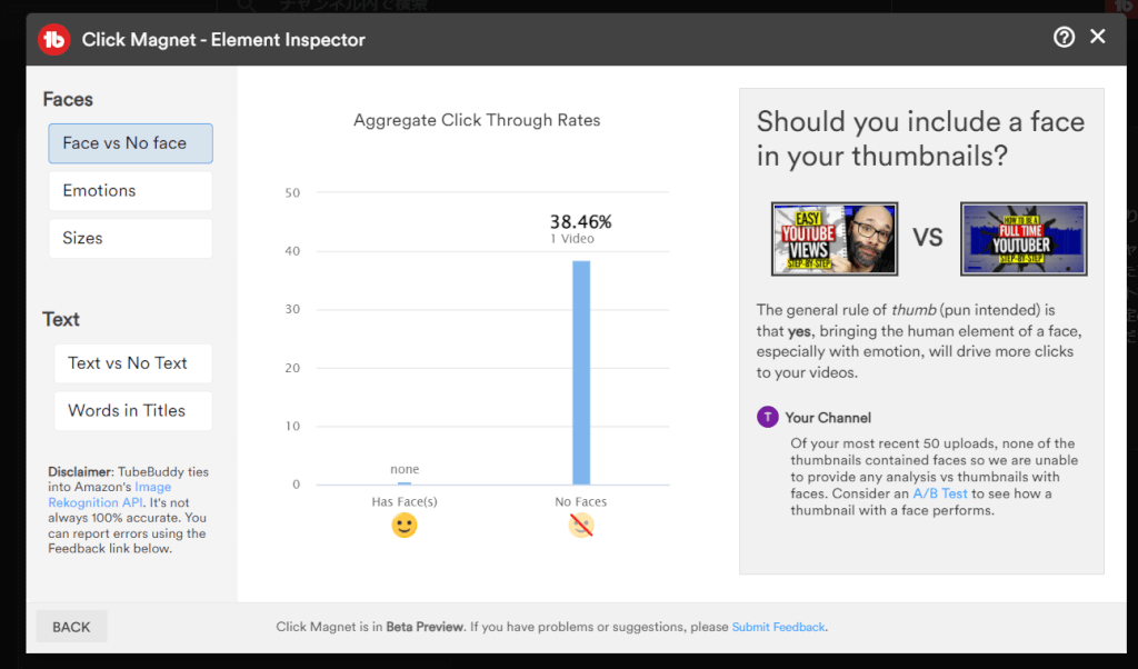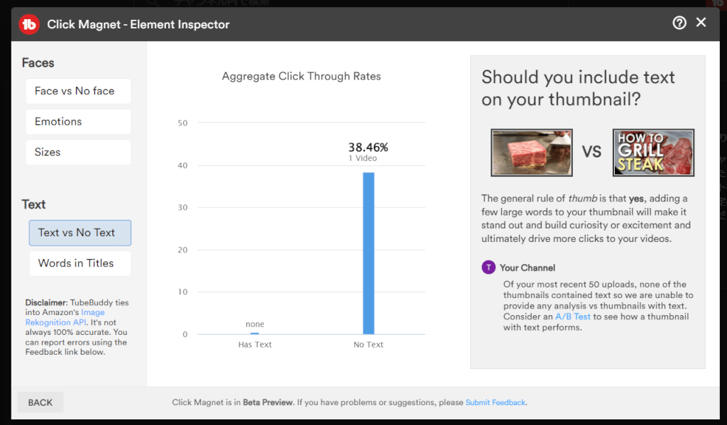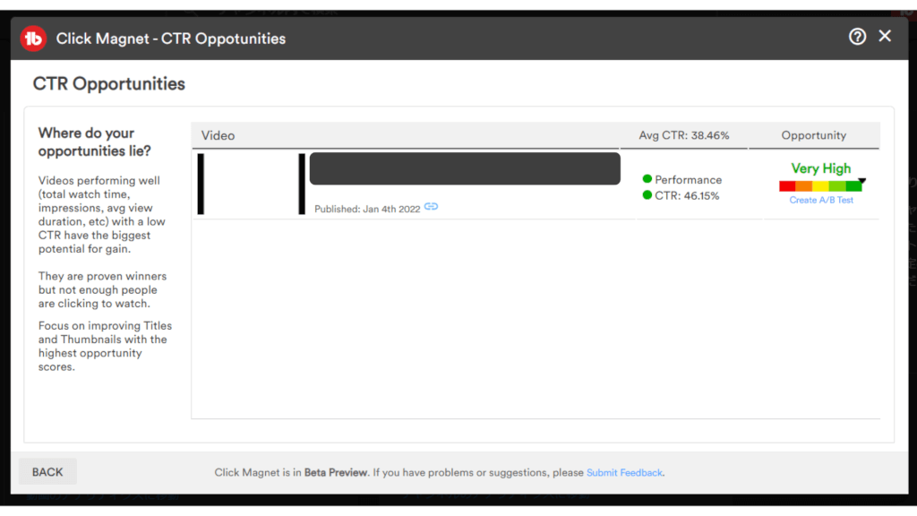 Por exemplo, o Click Magnet permite que você veja quais elementos na miniatura e no título estão aumentando as taxas de cliques.