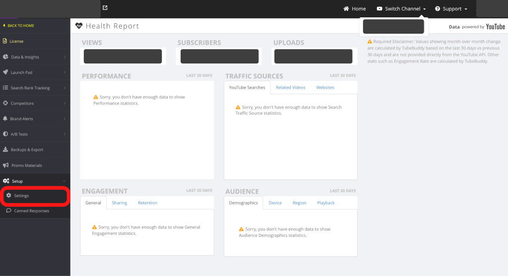 Esta seção fornece uma explicação fácil de entender de como visualizar a tela do painel de instrumentos TubeBuddy.