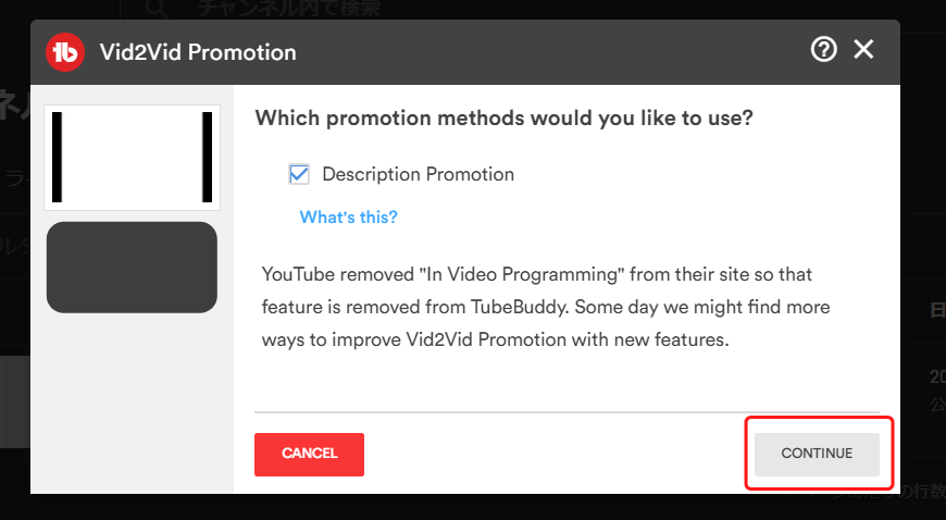| Vid2Vid Promotion (Promoção Vid2Vid) | Concentre-se em promover um vídeo em todos os seus outros vídeos.