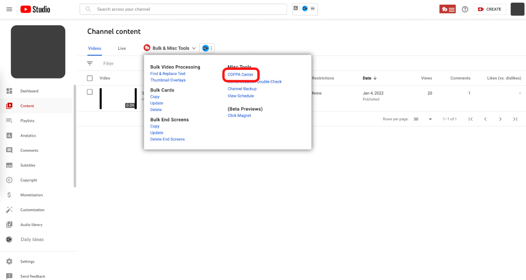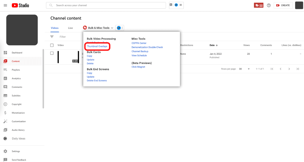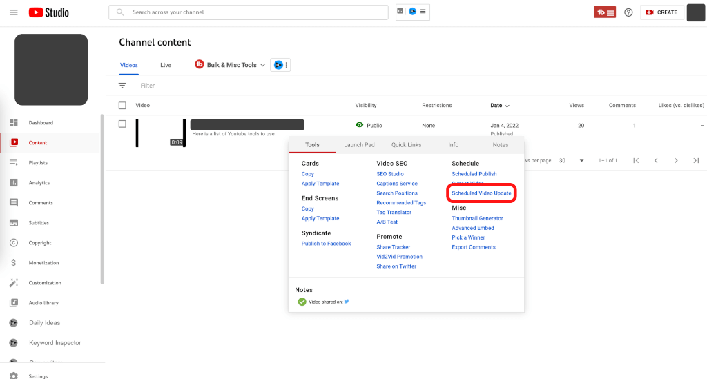 | Para iniciantes Importância: ★★★★★ | ☆ Default Upload Profiles(Configurações de perfil padrão para vídeos) ☆ Thumbnail Generator(Gerador de miniaturas) ☆ Coppa Center(Centro Coppa) ☆ Share Tracker(rastreador de ações) Scheduled Video Update(Atualização de vídeo programada) |