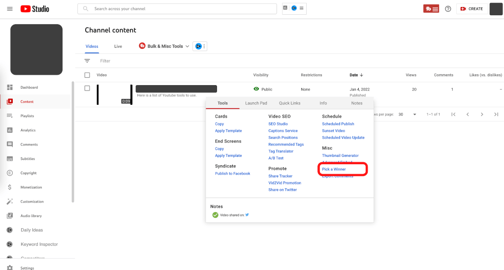 | Para usuários avançados Importância: ★★★ | ☆ Pick a Winner(Escolha um comentário vencedor em potencial) ☆ Demonetization Audit(Auditoria de Desmonetização) Demonetization Double-Check(Desmonetização Double-Check) |