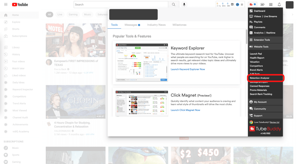 Esta explicação pressupõe que você tenha instalado a extensão TubeBuddy e que você seja capaz de fazer o login no TubeBuddy.