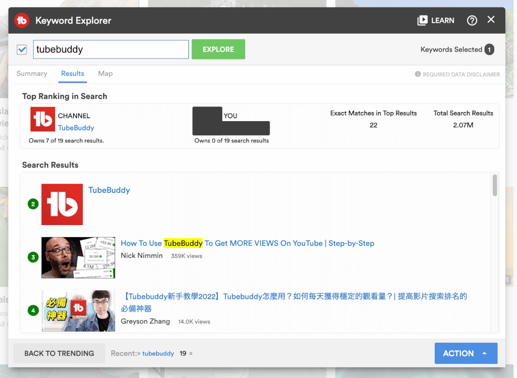 「Results」は、わざわざTubeBuddy(チューブバディ)の機能を使用しなくても、実際にYoutubeで検索すれば問題ないと思う方もいるかもしれません。