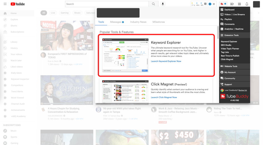 TubeBuddyのKeyword Explorerにアクセスする3つの方法