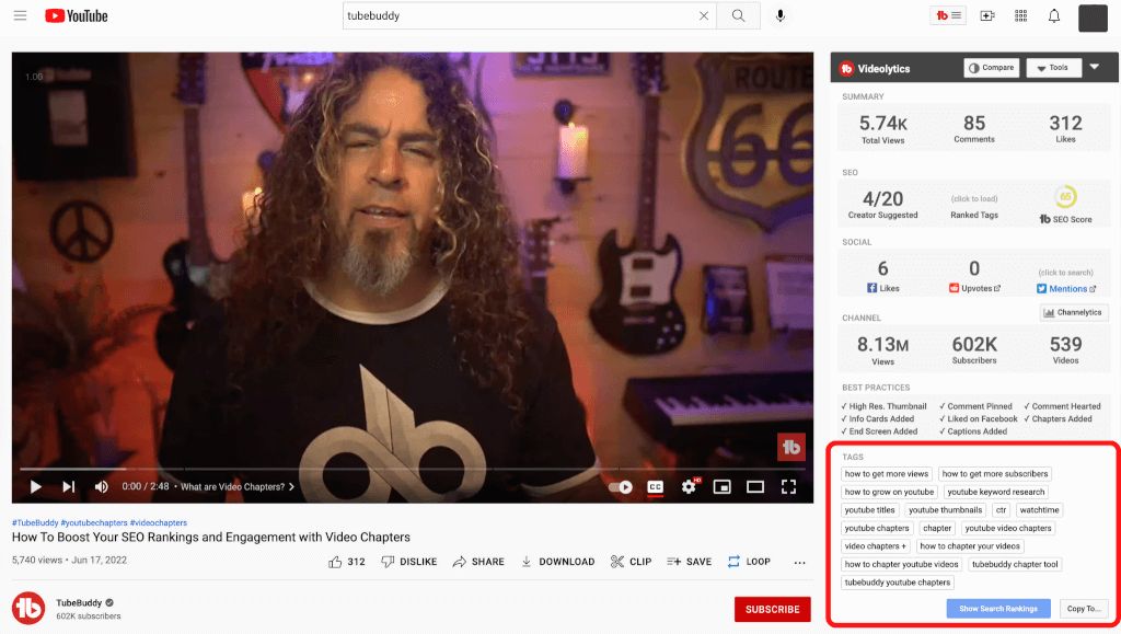 なお「Overall Score」の評価基準は、TubeBuddy(チューブバディ)の莫大なデータベースを元にして決定されています。