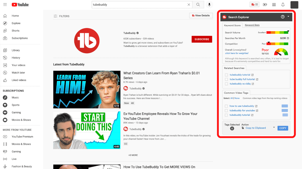 Tubebuddy(チューブバディ)のSearch Explorerの見方を解説